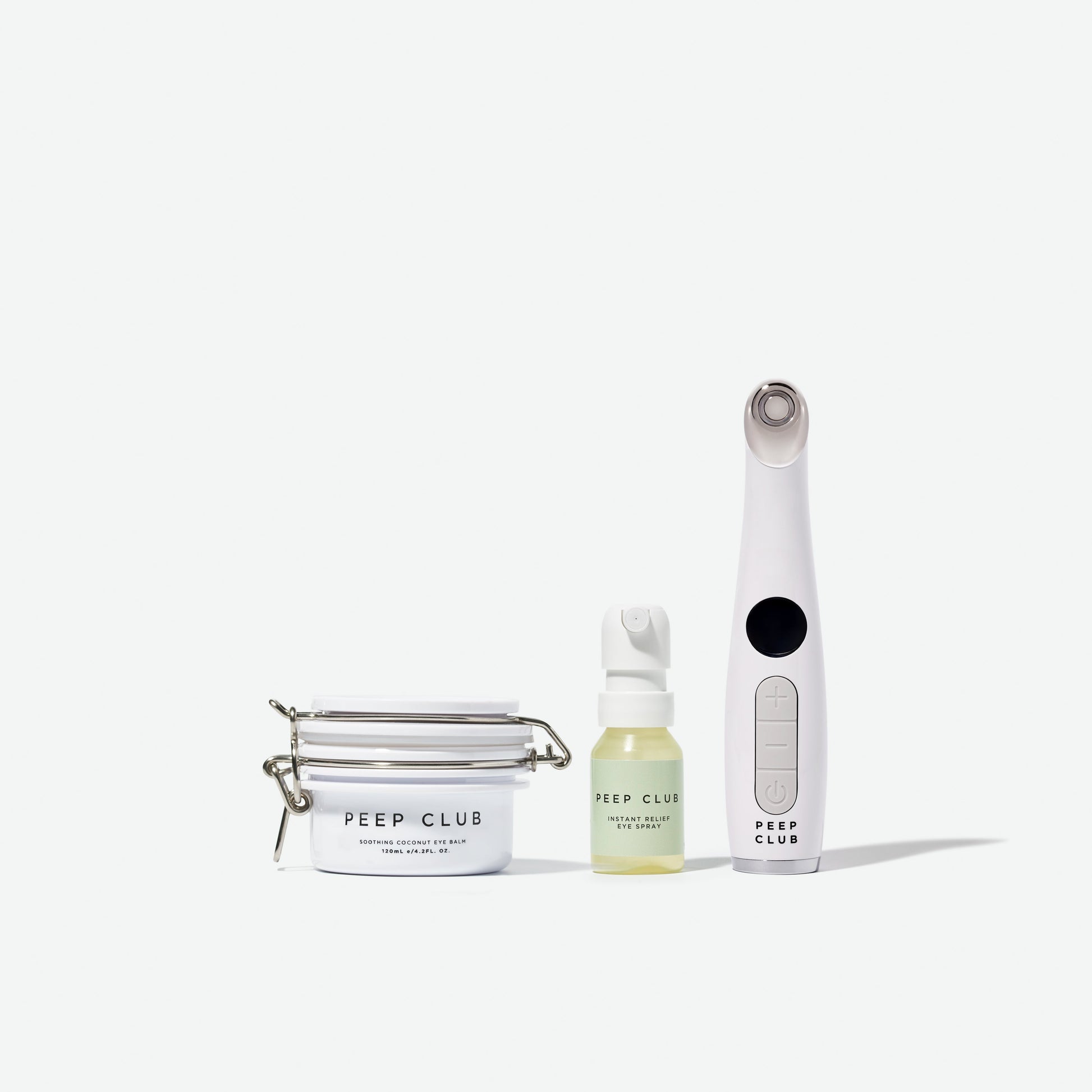 The three products work perfectly together; our mini Soothing Coconut Eye Balm nourishes the entire eye area including eyelashes, our Instant Relief Eye Spray is clinically proven to relieve dry eye symptoms throughout the day and our Heated Eye Wand™ LED+ improves the hydration of the eye itself and the quality of the delicate eye skin. And of course, it all comes beautifully packed in our signature kit bag.